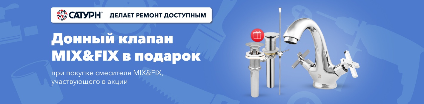 При покупке смесителя MIX&FIX, участвующего в акции, Вы получаете донный клапан MIX&FIX на выбор в подарок!