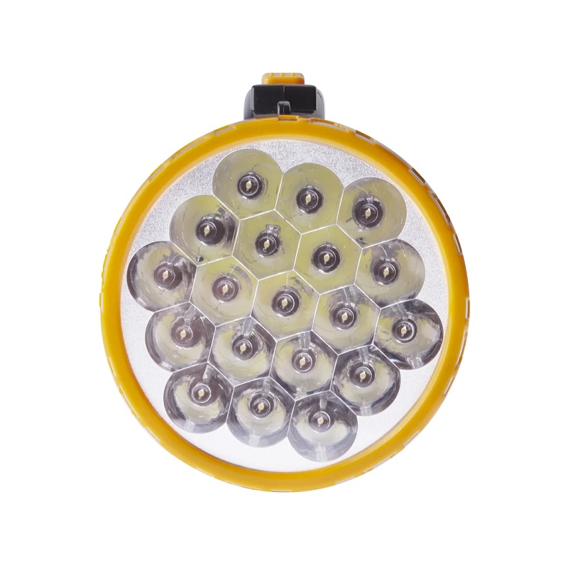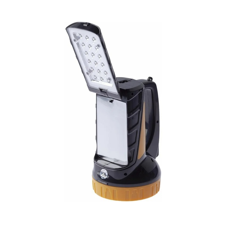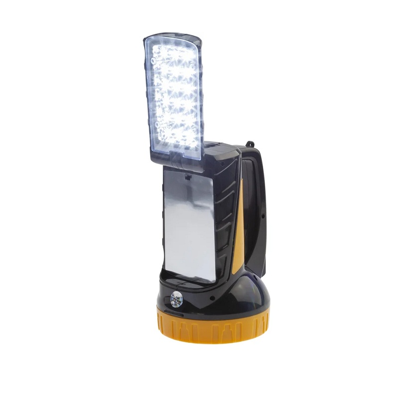Предназначен для освещения затемненного пространства. Фонарь оснащен 37 светодиодами: 19 LED расположены в торце (режим прожектора), 18 LED — во встроенном в корпус светильнике (режим кемпинга). Складная подвижная конструкция позволяет индивидуально настроить освещение. Фонарь имеет встроенный аккумулятор, время непрерывной работы составляет 9 часов. Зарядное устройство входит в комплект. Корпус из ударопрочного пластика, Эргономичная ручка хорошо лежит в руке. В комплекте предусмотрен ремешок, который можно закрепить на крючки в корпусе.