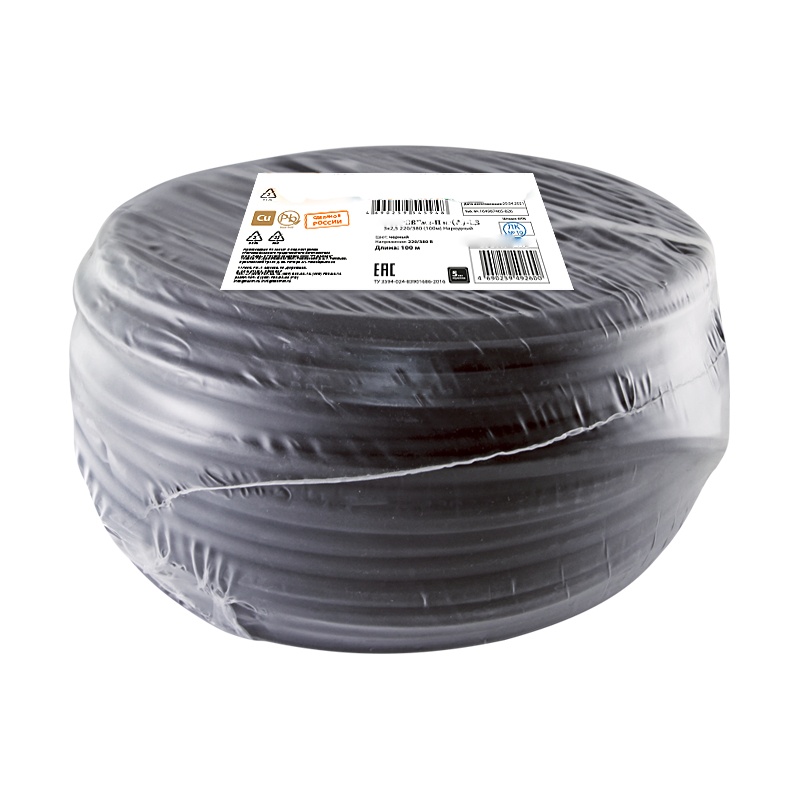 Кабель ППГ-Пнг(А)-HF 3х4мм2, черный (бухта-100 п.м.) ГОСТ 31996-2012