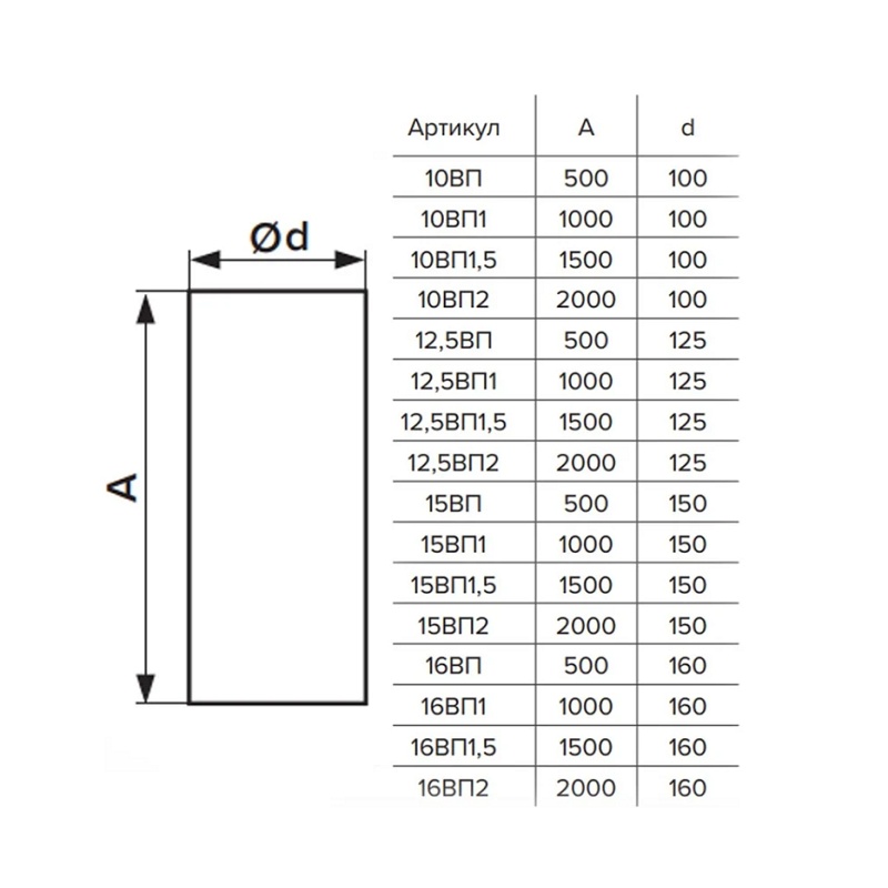 Канал (воздуховод) круглый Era 15ВП2, d=150 мм (2 м), пластик