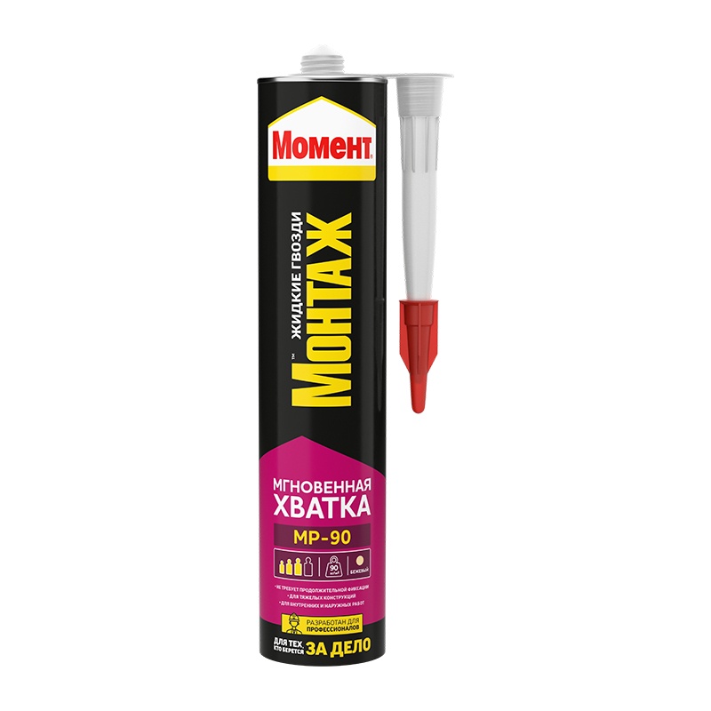 Предназначен для склеивания в местах, где необходимо особо прочное крепление деталей с момента соединения. Совместим с широким спектром материалов: кирпич, бетон, керамическая плитка, ДВП, ДСП, ОСБ, гипсокартон, фанера, камень, МДФ, дерево, сухая штукатурка, ПВХ, различные металлы и их сплавы, многие пластики. Обеспечивает высокую первоначальную силу схватывания уже с первых секунд после соединения склеиваемых деталей. Не подходит для полиэтилена, полипропилена, тефлона, зеркал, материалов, неустойчивых к воздействию органических растворителей. Не рекомендуется применять в местах, подверженных постоянному воздействию воды