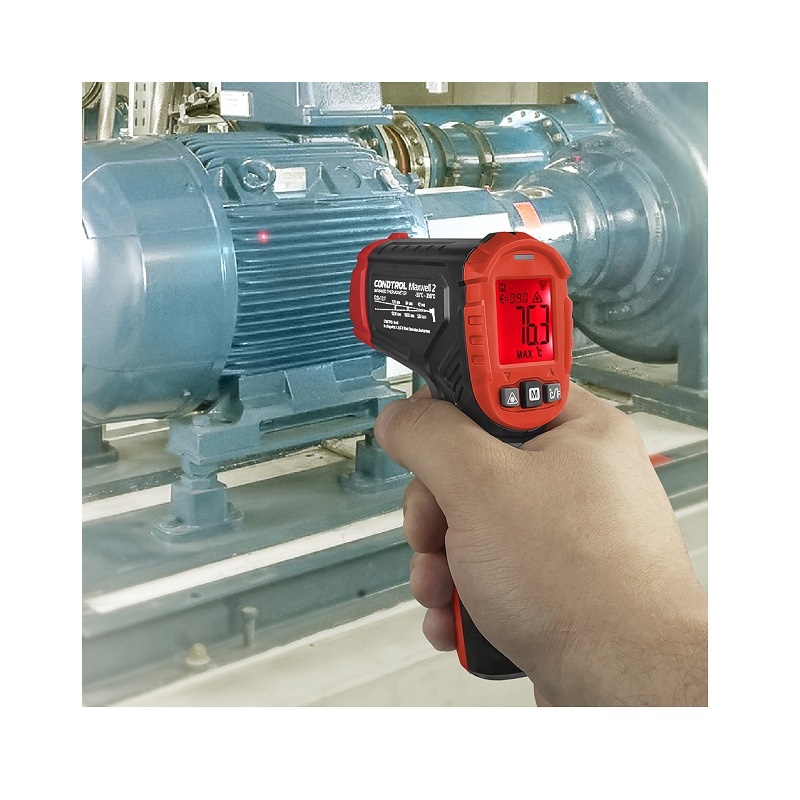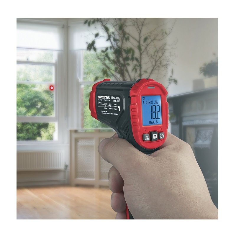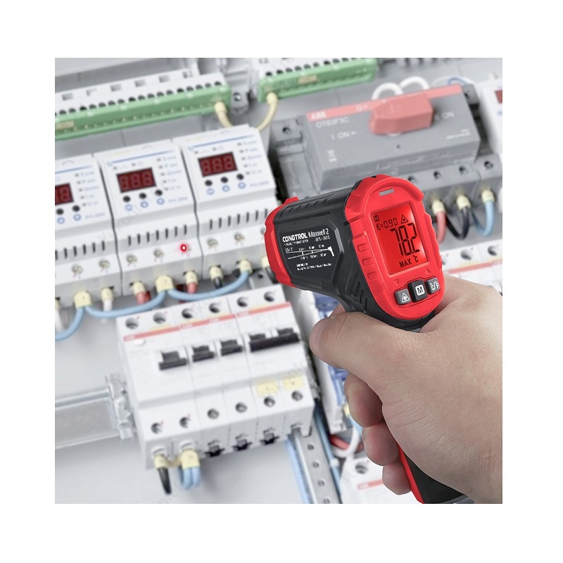 Пирометр Condtrol Maxwell 2 обладает оптическим разрешением 12:1, которого достаточно для измерения температуры на расстоянии, что позволяет безопасно работать с горячими или находящиеся под током объектами.