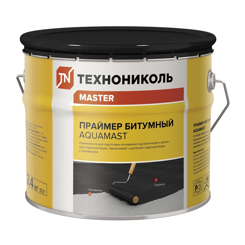 Праймер битумный Технониколь AquaMast представляет собой раствор нефтяных битумов в специально подобранных органических растворителях. Обладает высокой проникающей способностью и небольшим временем высыхания.