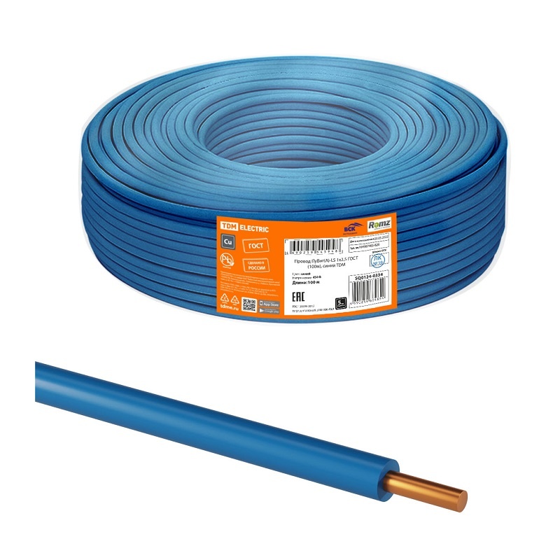 Провод ПуВнг-LS (ПВ-1) 1х2,5мм2, синий (бухта-100 п.м.) ГОСТ 31947-2012