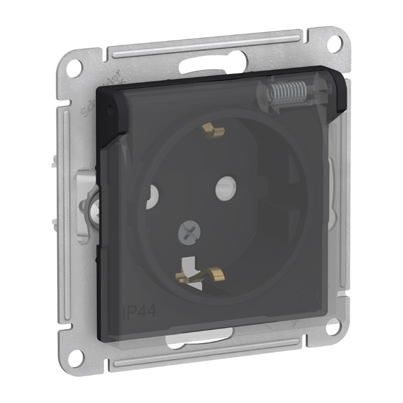 Розетка о/у Atlasdesign Aqua ATN441046, 1 гнездо, с/з, з/ш и крышкой, IP44, карбон