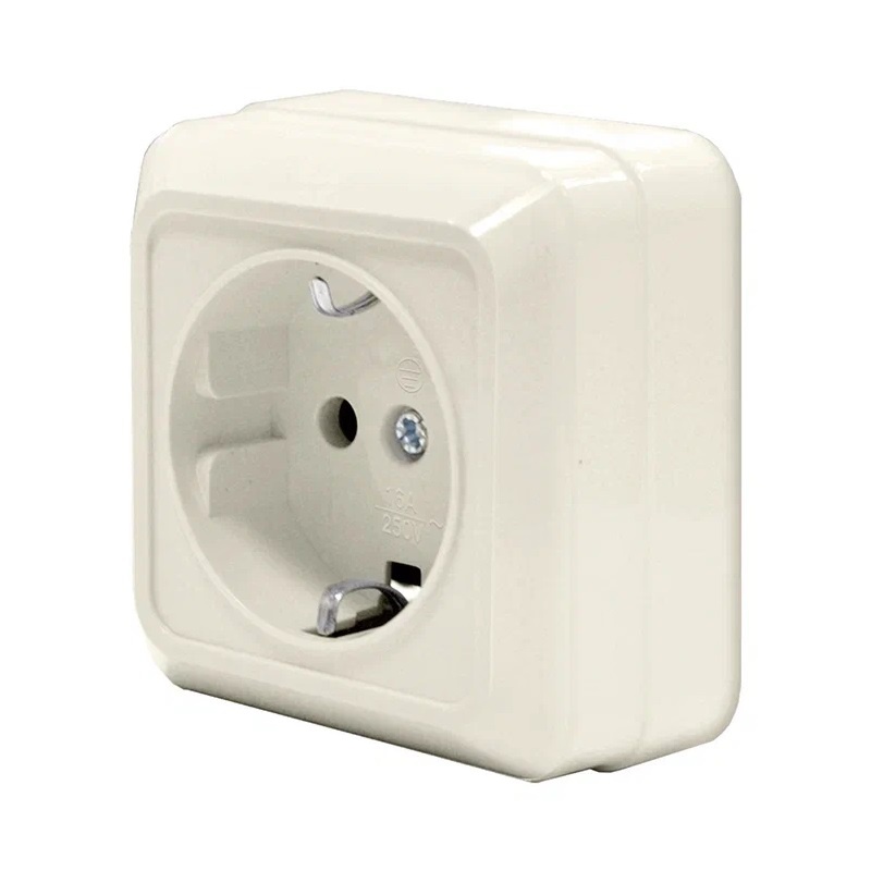 Розетка одноместная с заземлением открытой установки серии ОЛИМП, 1 гнездо, слоновая кость предназначена для установки в помещениях с открытой проводкой (ремонт, складские и подсобные помещения, временные коммуникации, нежилые помещения. Подходит для быстрой замены и монтажа в бытовых и коммерческих сетях переменного тока.