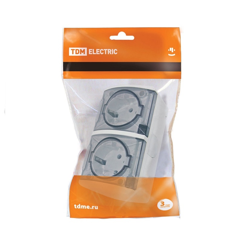 Розетка о/у Селигер SQ1818-0009, 2 гнезда, с/з и крышкой, IP54, белая