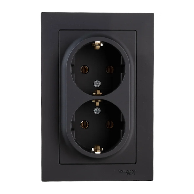 Розетка с/у Atlasdesign ATN001024, 2 гнезда, с/з, карбон