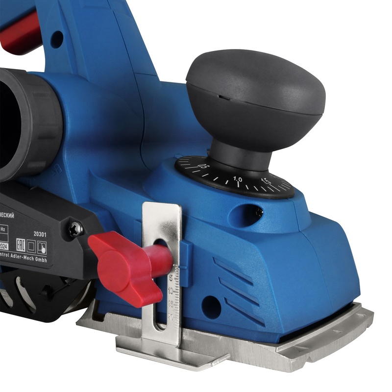 - Парковочный упор для безопасной установки рубанка на заготовку после выключения инструмента.