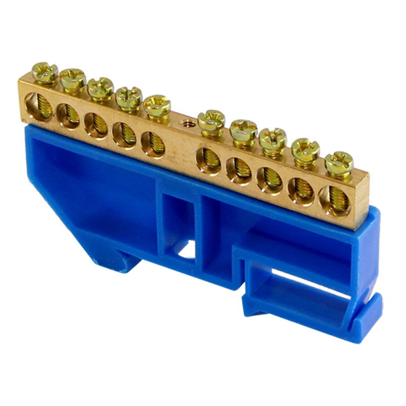 Шина "N" нулевая с изолятором на DIN-рейку 100А, 6х9 мм (10 отв.) большая стойка