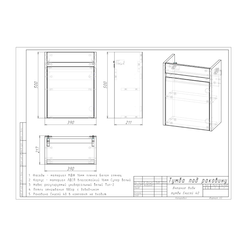 Тумба для ванной комнаты SKS Енисей 40, 400х500х211 мм