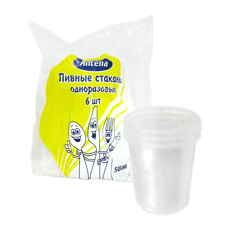 Стакан одноразовый 0,5 л, прозрачный (6 шт)