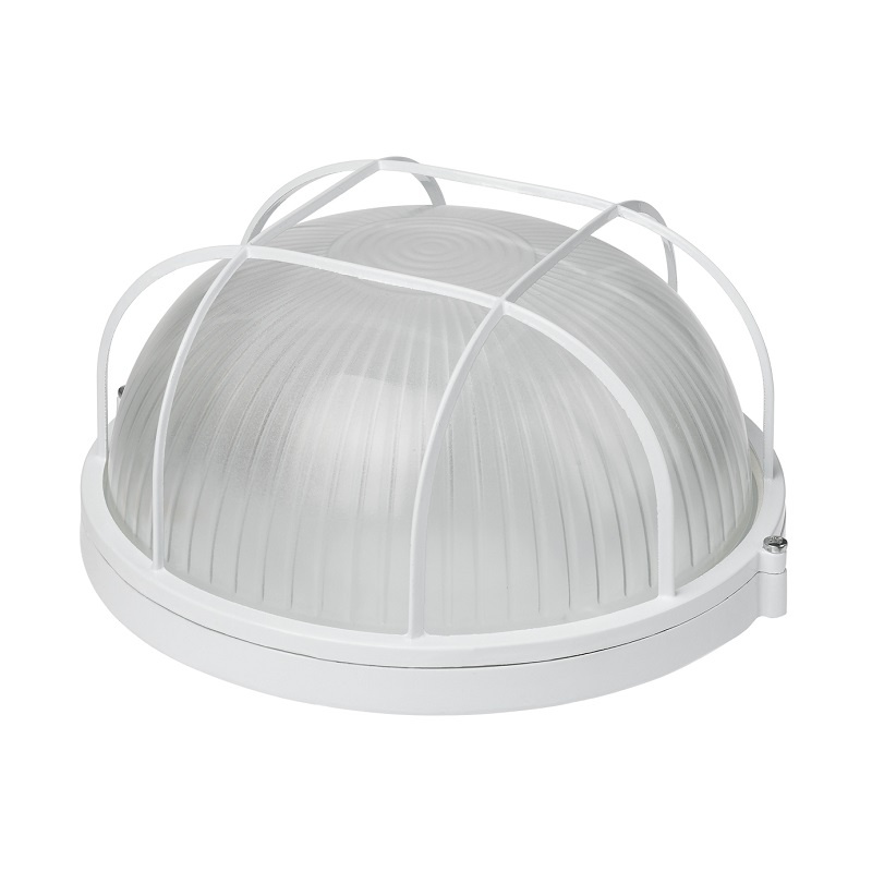 Светильник НПБ под Е27, 100 Вт, круг с решеткой, белый металл+стекло, IP54