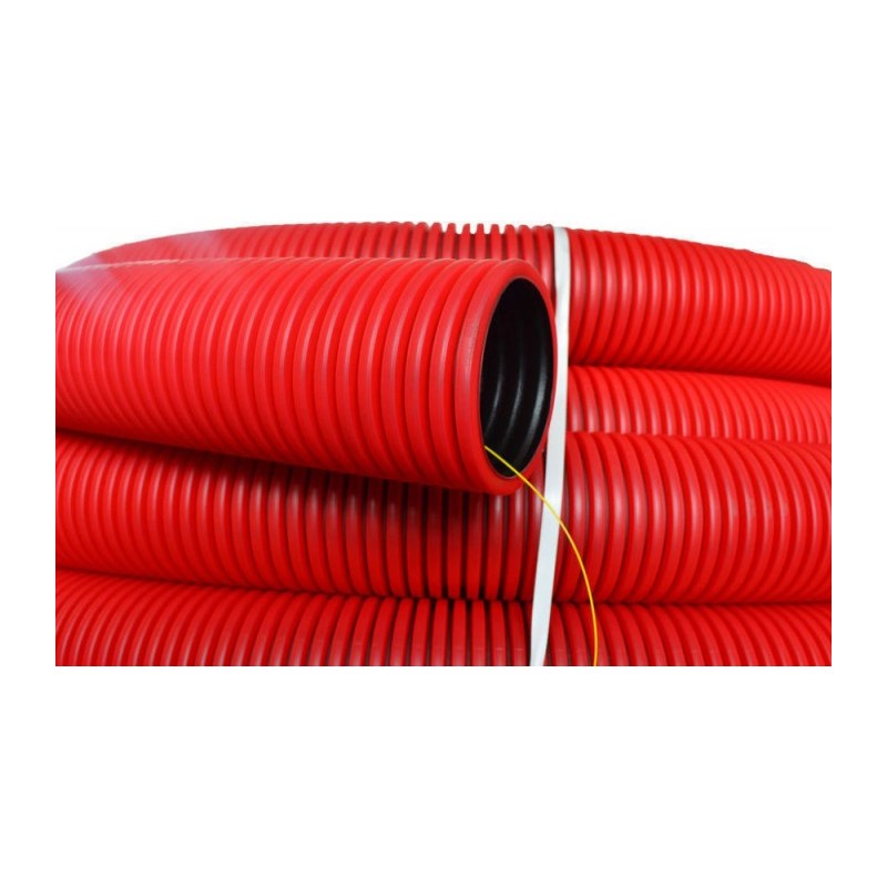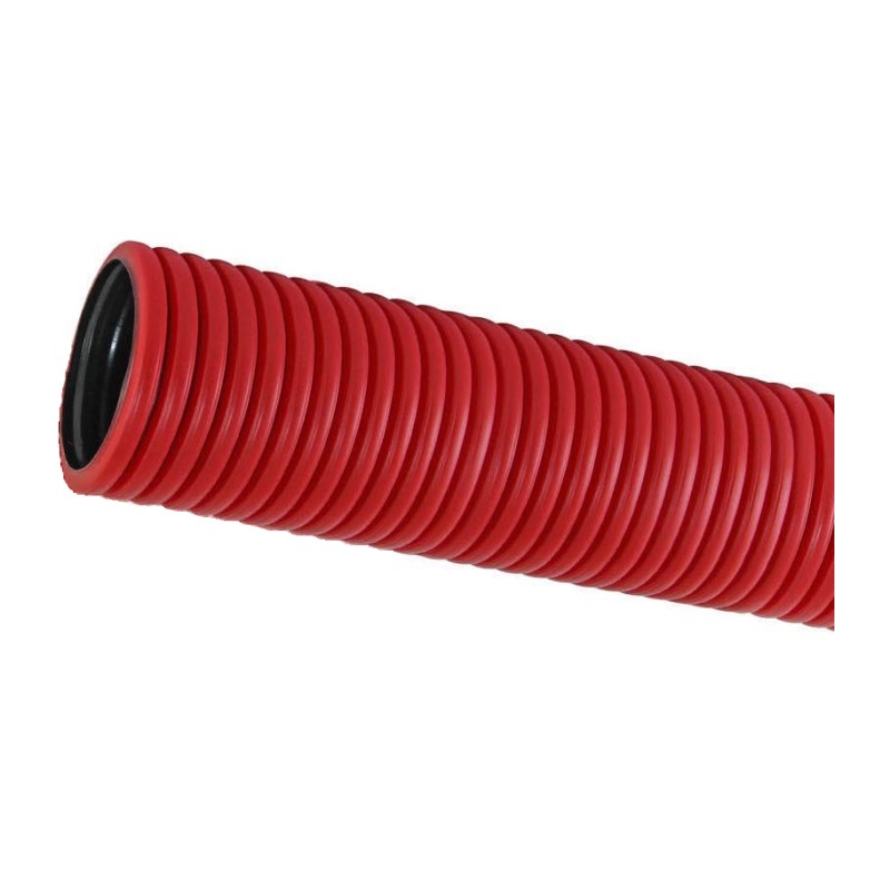Труба ПНД двухстенная SN18 с зондом, d=63 мм, красная с муфтой (бухта 50 п.м.)