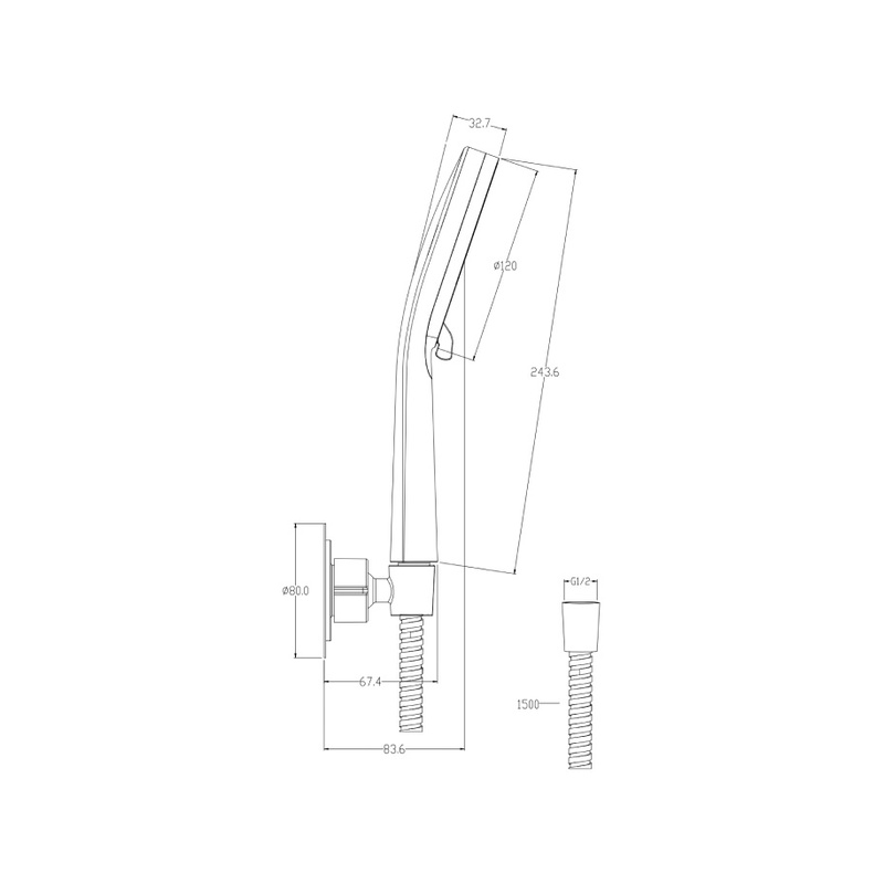 Cersanit Ferro – душевой гарнитур с 3 режимами подачи воды для монтажа на стену в ванной комнате. Круглая ручная лейка диаметром 12 см изготовлена из ABS-пластика. Размеры (ДхШхВ): 67,4 х 12 х 30,4 см. Расход воды: 9,6 л/мин.