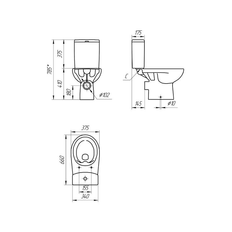 Унитаз-компакт Cersanit Nature Slim, безободковый, горизонтальный выпуск, 660х375х785 мм