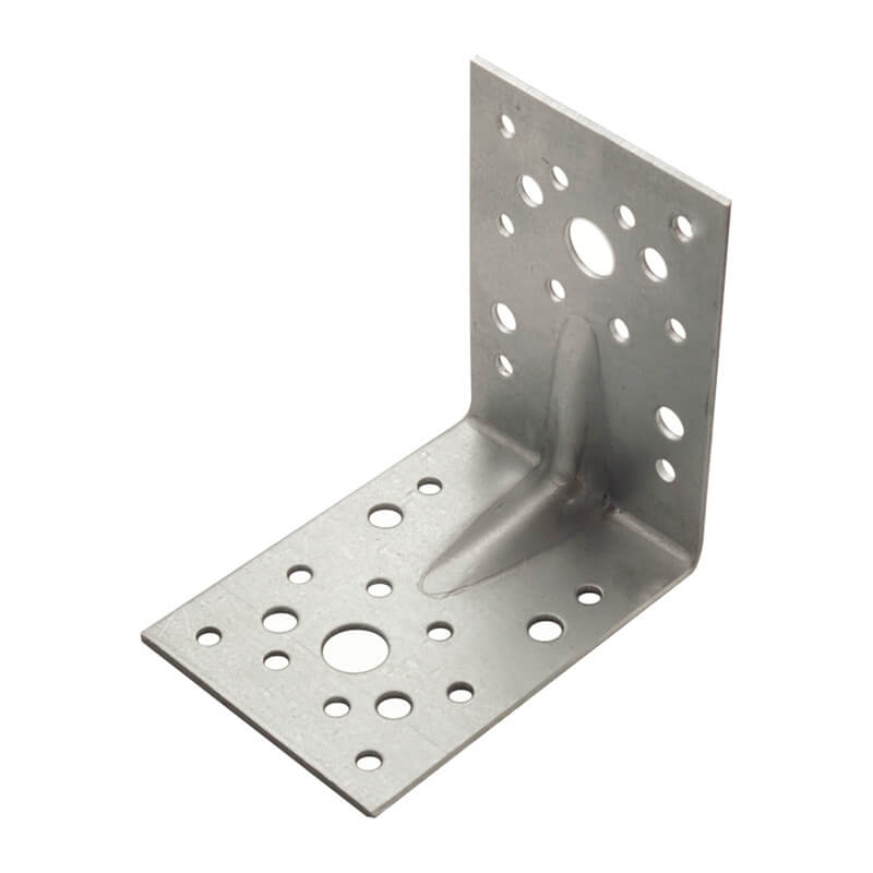 Предназначен для крепежа деревянных конструкций под углом 90 градусов. Имеет ребро жесткости для повышения прочности соединения. Изготовлен из оцинкованной стали толщиной 2 мм. Имеет отверстия под саморезы, гвозди, болты. Длина полки уголка 90 мм, ширина 40 мм