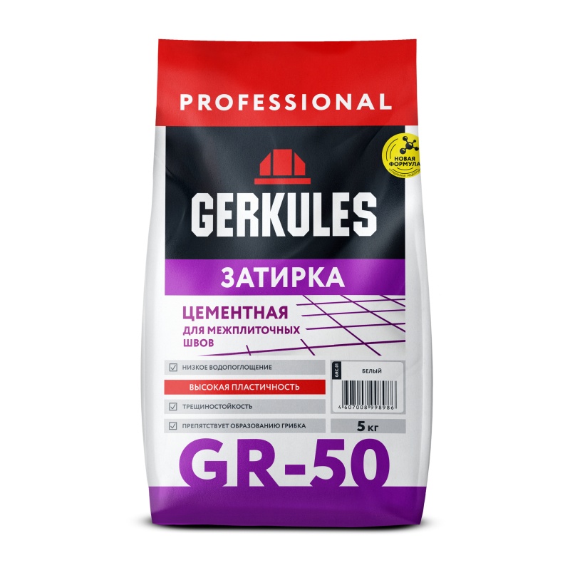Затирка цементная Gerkules GR-50 GRC.01 для межплиточных швов белая, 5 кг