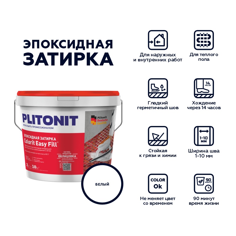 Затирка эпоксидная Plitonit Colorit Easy Fill белый, 2 кг