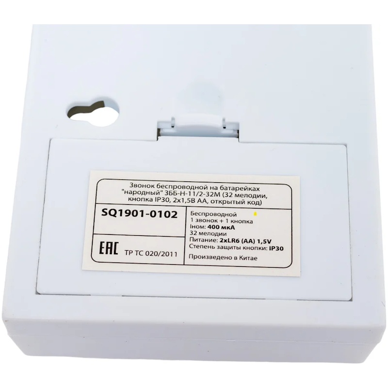 Звонок беспроводной, с кнопкой, батарейка 2х1,5В/АА, 32 мелодии